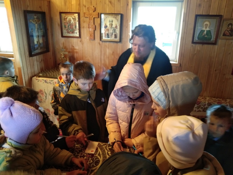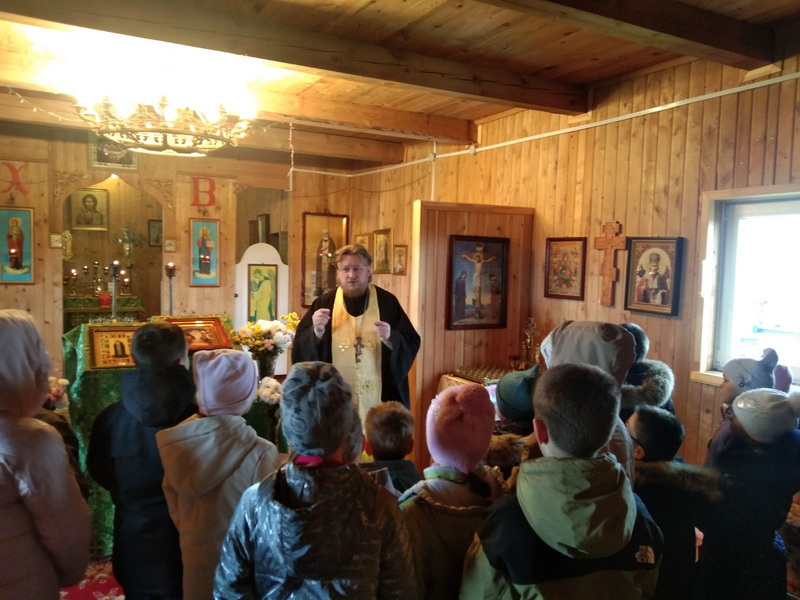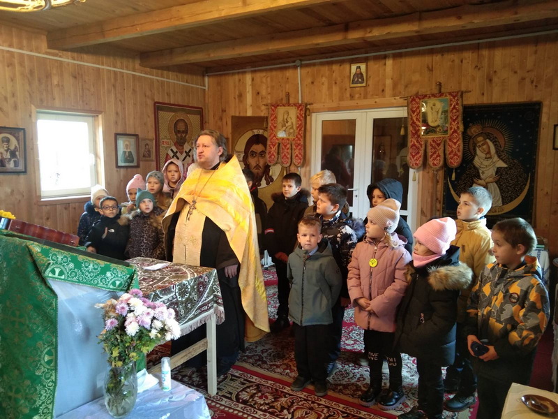 В храме преподобного Серафима Саровского аг. Сеньковщина Слонимского района протоиерей Андрей Цигель говорил с учащимися 1-4 классов о роли храма Божия в жизни человека. Дети узнали, для чего нужно ходить в храм, как правильно молиться о своих родных и близких. Затем ребята написали записки о здравии и об упокоении, после чего для них был совершен краткий молебен и произнесена заупокойная ектения.