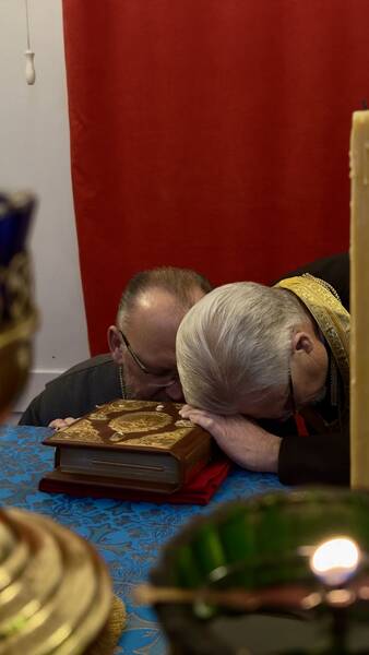 Накануне соборного служения Литургии священнослужители приступили к Таинству Исповеди.