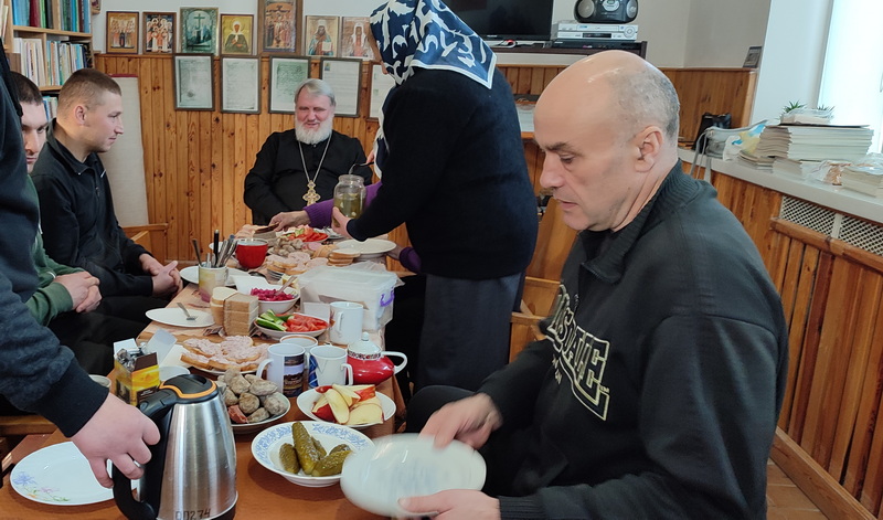 После богослужения состоялась братская трапеза, во время которой священник рассказал о первом послании 12-ти апостолов Христовых на проповедь к «погибшим овцам дома Израилева» - евреям, а также ответил на вопросы присутствующих.