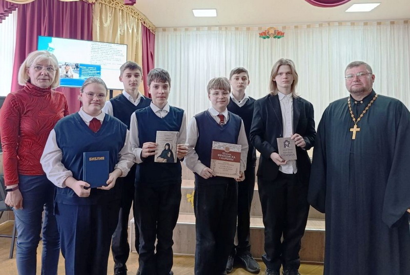 20 марта иерей Геннадий Липский провел беседу с учащимися 8-11 классов СШ №2 г. Слонима на темы: «Быть достойным гражданином Республики Беларусь – значит разделять и поддерживать духовные ценности белорусского общества» и «История Православной книги».