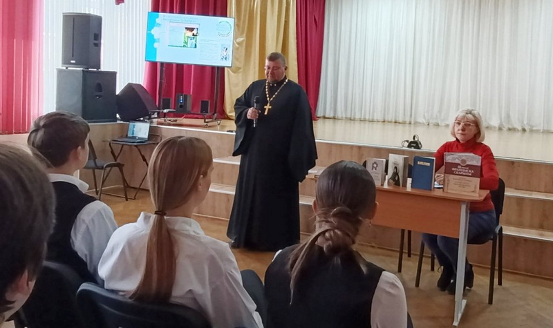 Священник говорил о патриотизме и любви к Родине как преддверии Небесного Отечества, а также о христианской литературе как источнике богопознания и поддержания духовных сил человека.