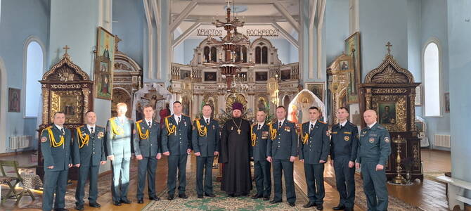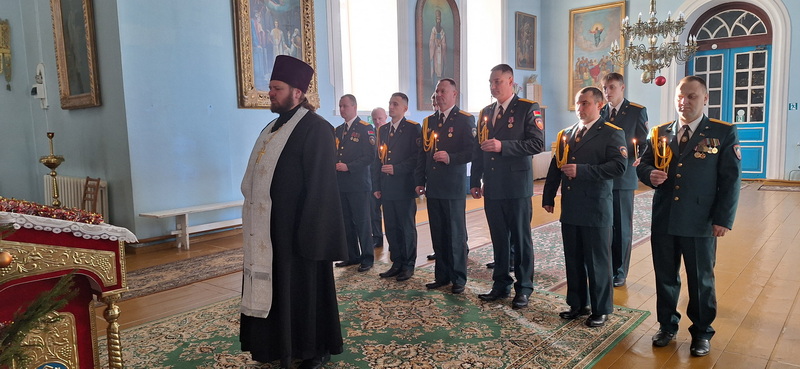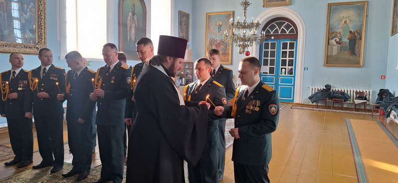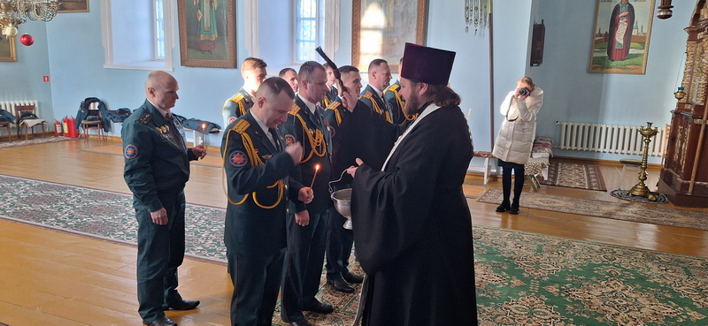 Далее в храме Покрова Пресвятой Богородицы для спасателей был совершен молебен, произнесено многолетие, а по его окончании священник окропил всех святой водой.