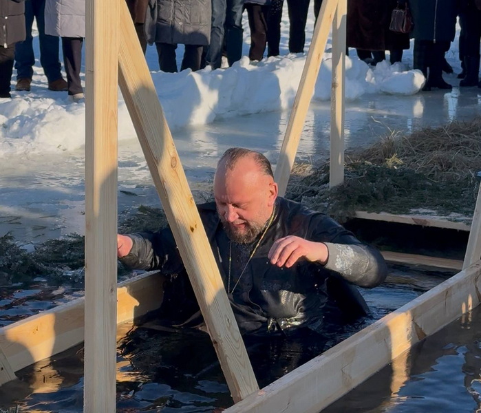С приветственными словами и поздравлениями с праздником Крещения Господня к присутствующим обратились руководитель района С.С. Чарковский и протоиерей Анатолий. После этого они первыми окунулись в прорубь с освященной водой, показав жителям и гостям города пример христианского благочестия и веры.