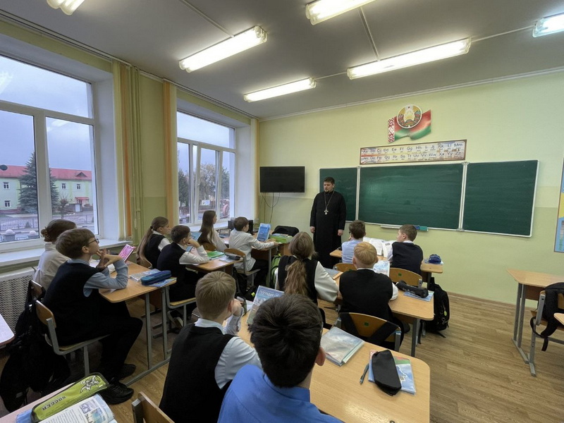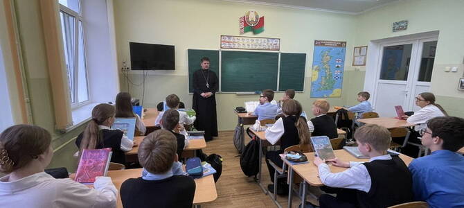 17 ноября клирик Свято-Троицкого собора г. Слонима иерей Иоанн Нудьга провел беседу с учащимися 7 «В» класса средней школы №5 на тему: «Что приносит век высоких технологий».