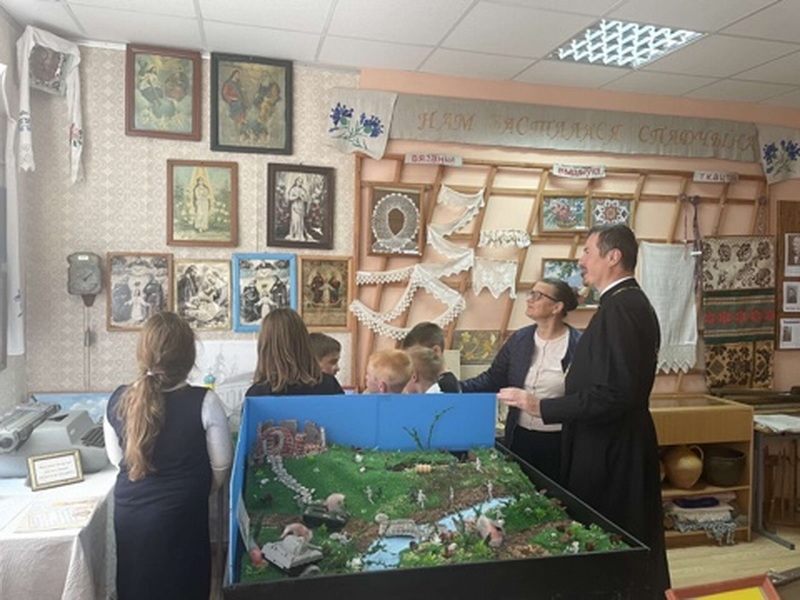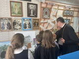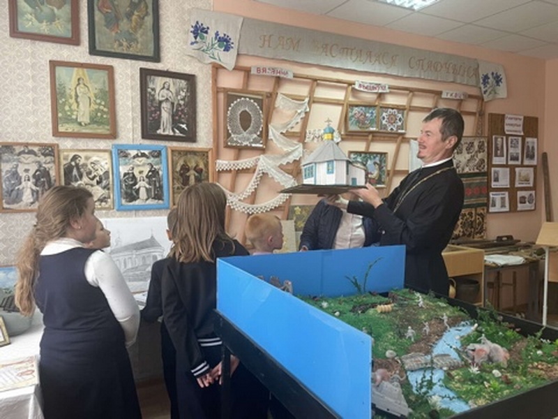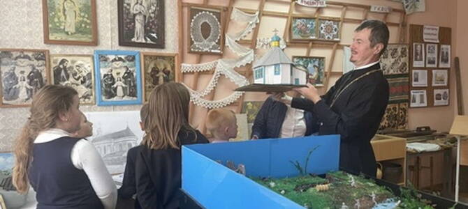 Мероприятие прошло в кабинете школьного музея. Для наглядности использовались макет храма святителя Николая Чудотворца д. Ногородовичи и иконы из музейной коллекции.