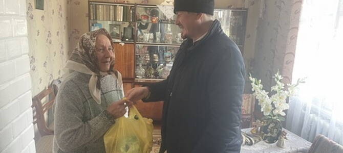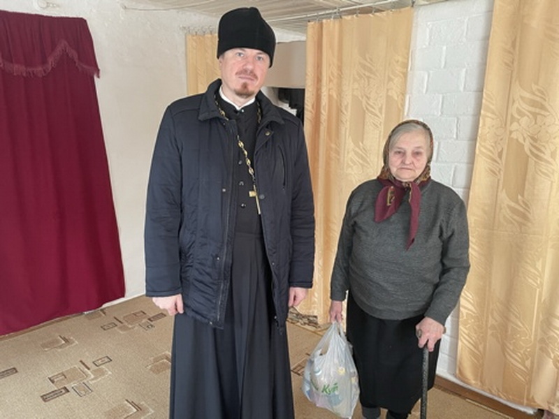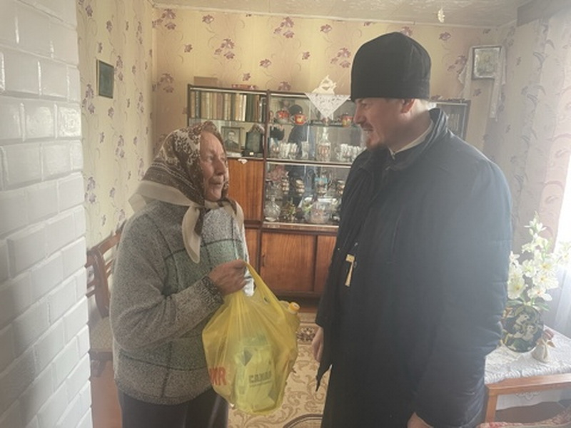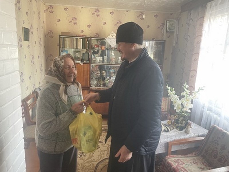 Священнослужитель побеседовал с прихожанами на духовные темы и оказал помощь продуктами питания.
