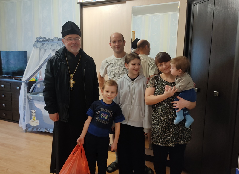 Священник побеседовал с прихожанами о наступающем празднике Рождества Христова, оказал помощь продуктами питания и пожелал Божией помощи.