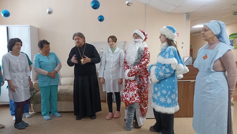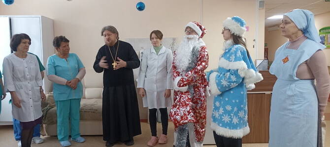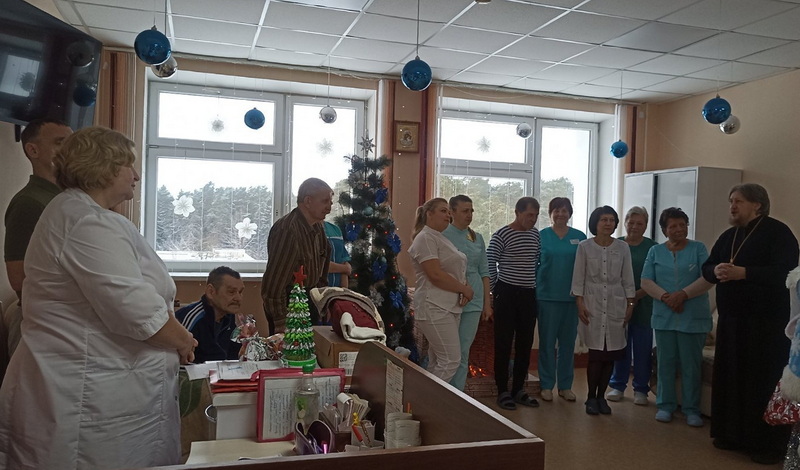 31 декабря ключарь Спасо-Преображенского кафедрального собора г. Слонима протоиерей Андрей Цигель, сестры прихода А.М. Пыркова и И.Е. Радецкая, а также представители БРСМ средней школы №2 г. Слонима в рамках епархиальной акции «Делами добра – к Рождеству Христову!» и республиканской акции Белорусского республиканского союза молодежи «Марафон добрых дел» побывали в неврологическом отделении Слонимской ЦРБ.
