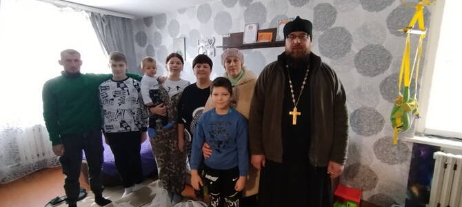 6 января настоятель храма святого великомученика Димитрия Солунского аг. Щорсы Новогрудского благочиния иерей Димитрий Почебут в рамках епархиальной акции «Делами добра - к Рождеству Христову» посетил многодетные семьи Гапоник и Сыроежко.