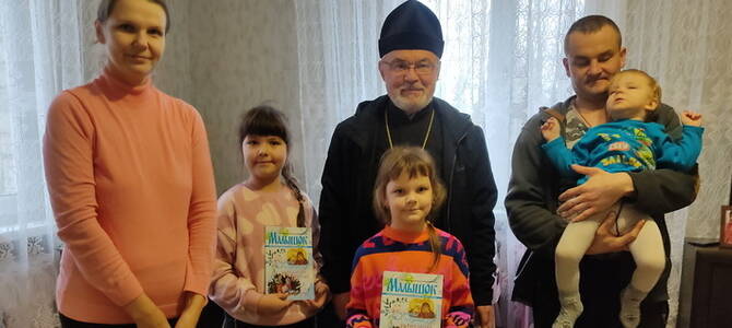 10 декабря настоятель прихода храма Рождества Пресвятой Богородицы г.п. Новоельня Дятловского района протоиерей Валерий Мануйло в рамках акции «Делами добра – к Рождеству Христову!» встретился с многодетным семьям С.В. Глебович (3 детей), Г.А. Климец ( 3 детей).