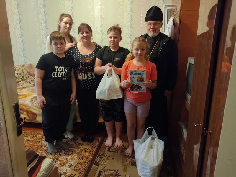 Священник побеседовал с семьями о наступающем празднике Рождества Христова, оказал помощь продуктами питания и пожелал всем Божией помощи.