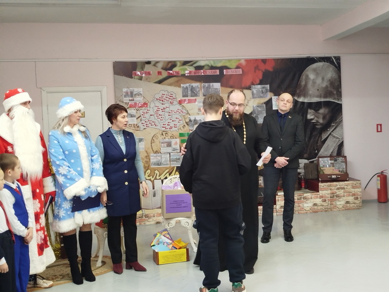 15 декабря настоятель храма святого великомученика Димитрия Солунского аг. Щорсы Новогрудского благочиния иерей Димитрий Почебут посетил Красненскую среднюю школу Кореличского района, где в рамках епархиальной акции «Делами добра — к Рождеству Христову!» в торжественной обстановке передал денежную помощь детям из многодетных семей Сыроежко и Дудук.