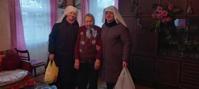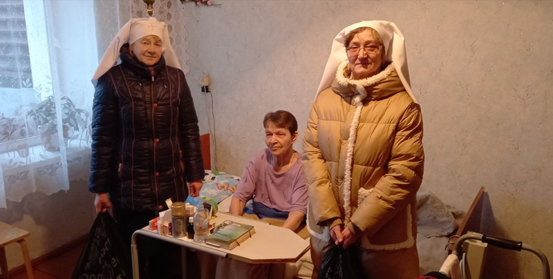 15-19 декабря сестры Сестричества в честь святой блаженной Ксении Петербургской при храме святых новомучеников и исповедников Церкви Русской г. Дятлово в рамках акции «Делами добра — к Рождеству Христову!» навестили одиноких пожилых людей прихода В.В. Павловского, З.А. Капкович и В.А. Шавель.