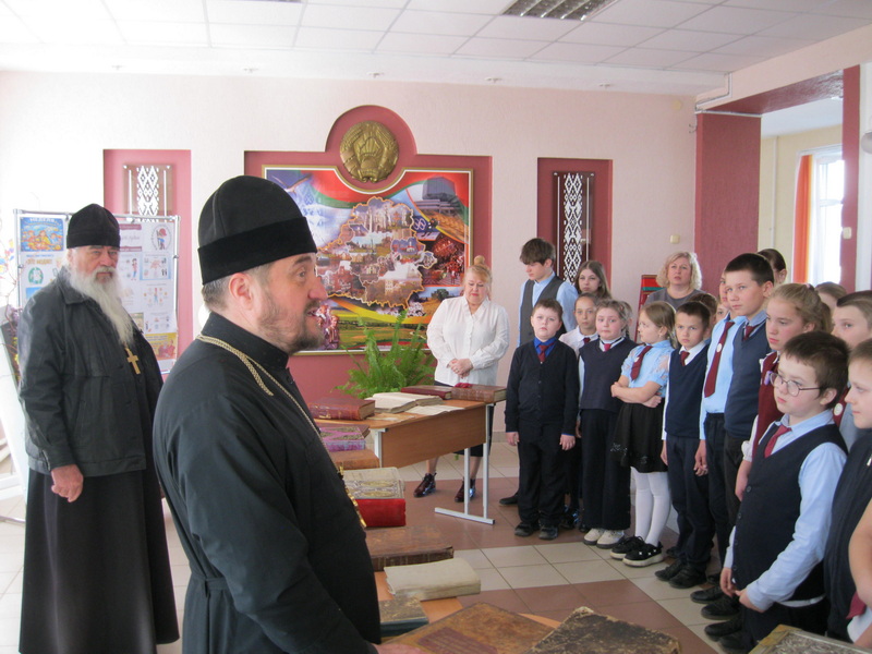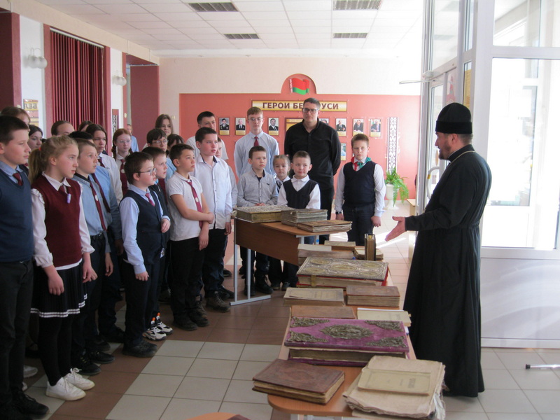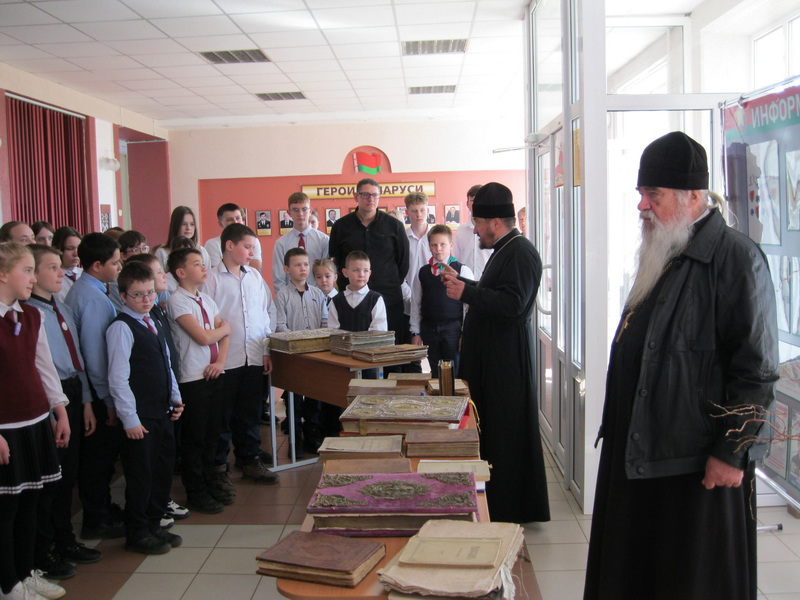 18 марта в Мижевичской средней школе прошел День православной книги. Мероприятие для учащихся провели клирики Слонимского благочиния протоиереи Геннадий Логин и Николай Щаюк.