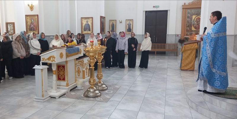 Настоятель храма иерей Иоанн Кисель рассказал школьникам историю праздника и пожелал помощи и покровительства Царицы Небесной.