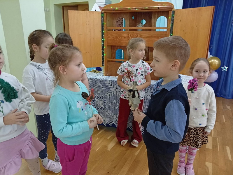 Особый интерес у дошкольников вызвала сказка «Как милосердная курочка петушка спасла». Дети были так впечатлены сюжетом, что решили разучить и показать эту поучительную историю в кукольном театре «Батлейка» для воспитанников младшей группы.
