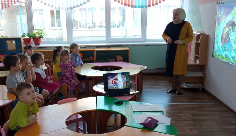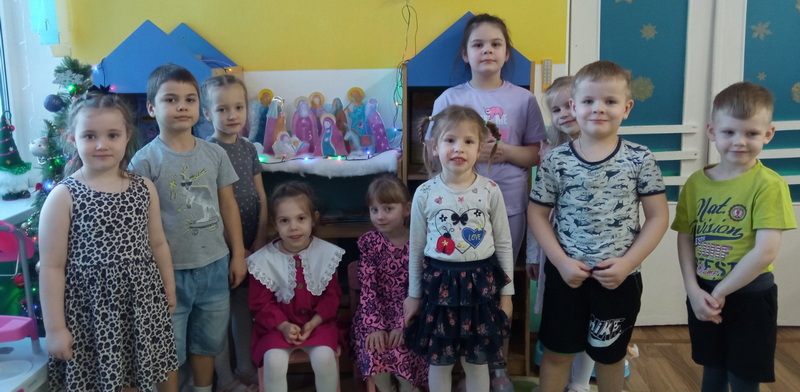 Преподаватель Н.О. Терешко познакомила воспитанников старшей группы с историей праздника. Дети посмотрели тематический мультфильм «Рождественская история» и своими руками оформили рождественский вертеп.