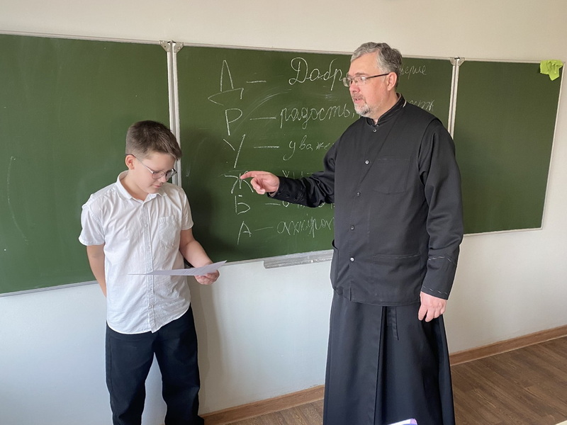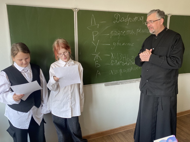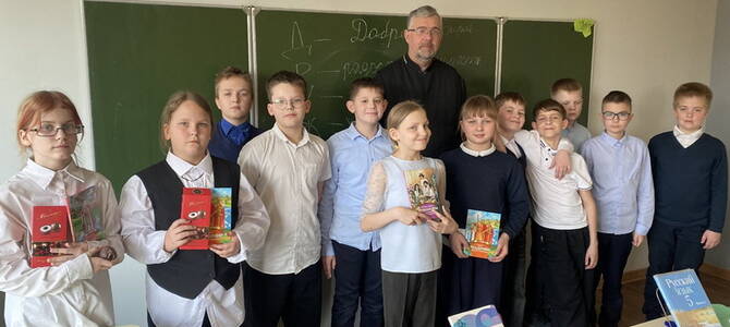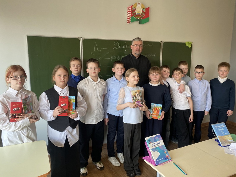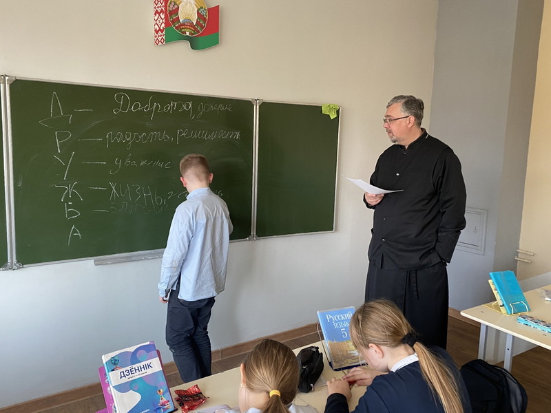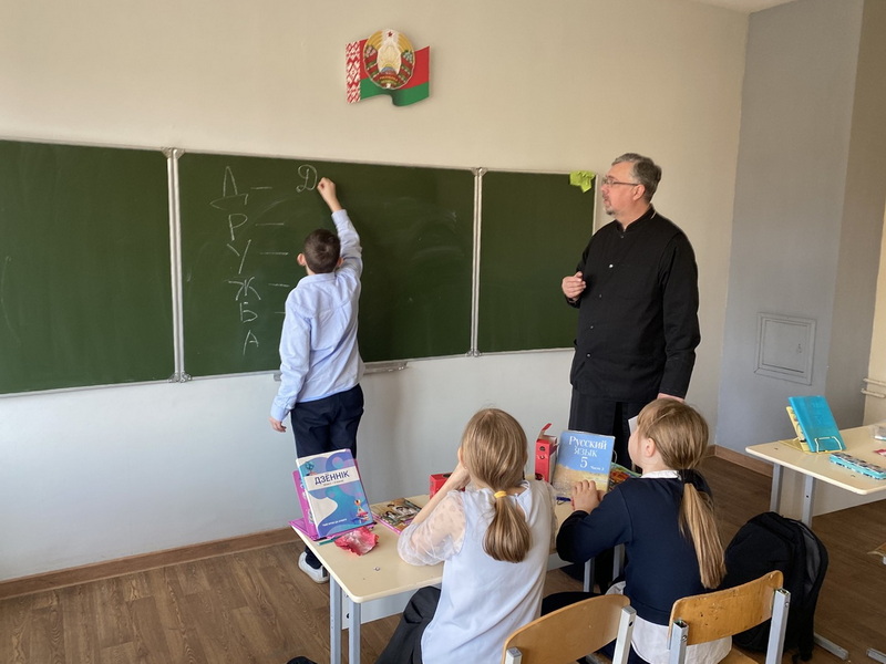 11 марта настоятель храма в честь Казанской иконы Божией Матери аг. Большие Шиловичи Слонимского района протоиерей Вадим Петлицкий провел беседу с учащимися 5 класса средней школы №9 имени И.М. Сухомлина г. Слонима на тему: «Дружба крепка не лестью, а правдой и честью».