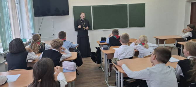 Священник провел с учащимися беседу а тему: "Дружба крепка не лестью, но правдой и честью". Он рассказа о том, как строится настоящая дружба, на чем она основывается и как распознать ложного друга. Для лучшего усвоения материала были просмотра были предложены тематические видеоролики.