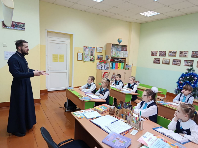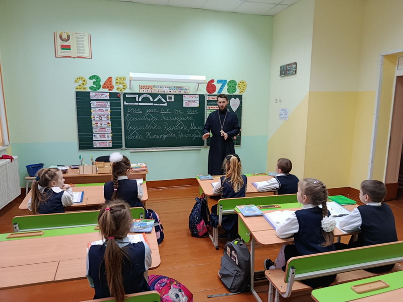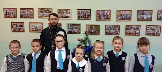22 декабря настоятель храма святых Аапостолов Петра и Павла аг. Валевка Новогрудского благочиния иерей Евгений Запольский провел беседу с учащимися 3 класса Валевской средней школы на тему: «Рождество Христово».