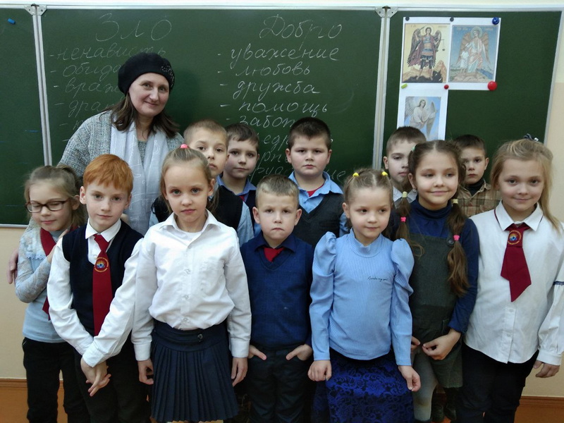 27 ноября супруга настоятеля храма преподобного Серафима Саровского аг. Сеньковщина Н.В. Цигель провела занятия с учащимися младших классов Сеньковщинской средней школы на тему: «Борьба добра и зла. Детская жестокость».