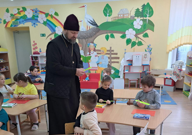 11 ноября настоятель Свято-Троицкого храма г.п. Мир Кореличского благочиния иерей Феодор Лукашевич побывал в детском саду г.п. Мир, где побеседовал с воспитанниками.