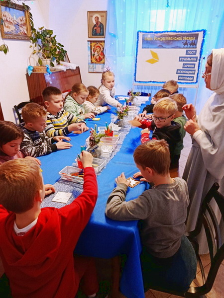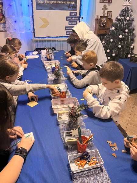 Подключившись к епархиальной акции «Делами добра – к Рождеству Христову», школьники вырезали вифлеемские звездочки-открытки в подарок пациентам больницы.