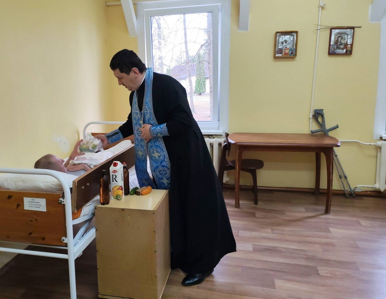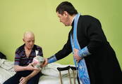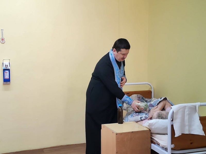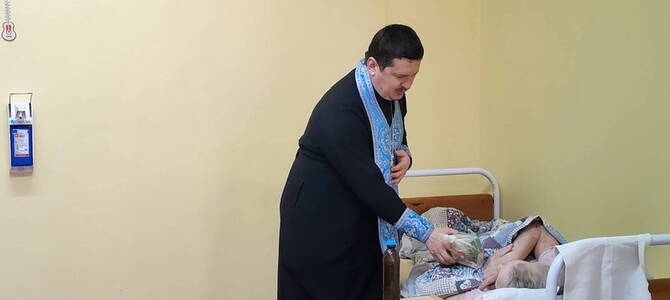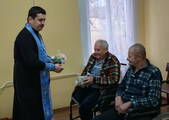 После совместной молитвы священнослужитель поздравил насельников и медперсонал пансионата с праздником, пожелал всем душевного и телесного здравия и спасения души, а также вручил угощения.