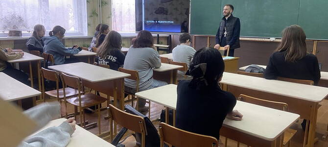 Используя различные формы работы с учащимися, священнослужители обсуждали вопросы веры и смысла жизни, любви и честности, проблемы бесконфликтного общения и доброжелательного отношения друг к другу.