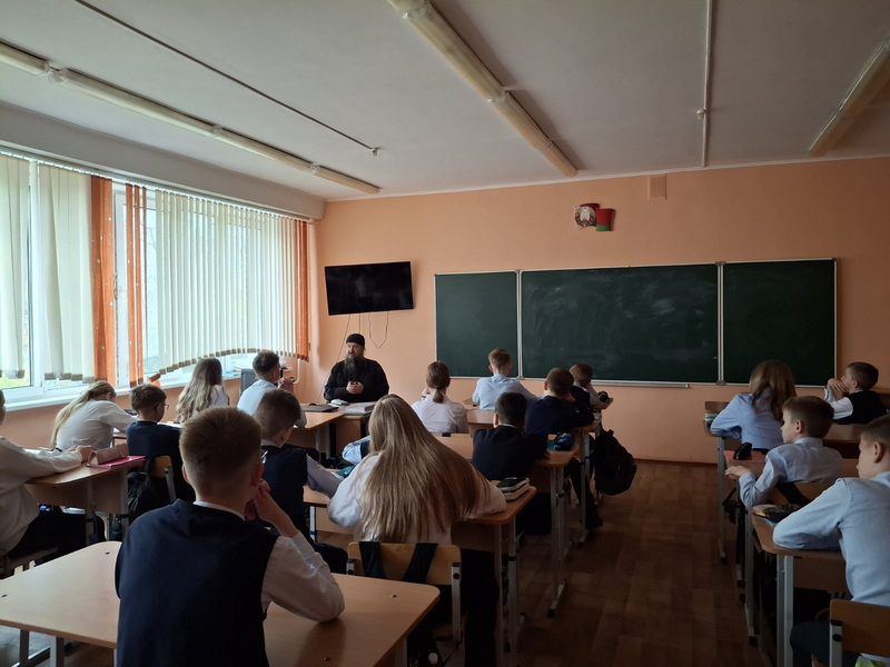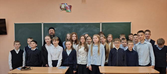31 марта настоятель храма в честь иконы Божией Матери «Споручница грешных» г. Слонима протоиерей Владимир Комаров встретился с учащимися 6 «Б» класса средней школы №8.