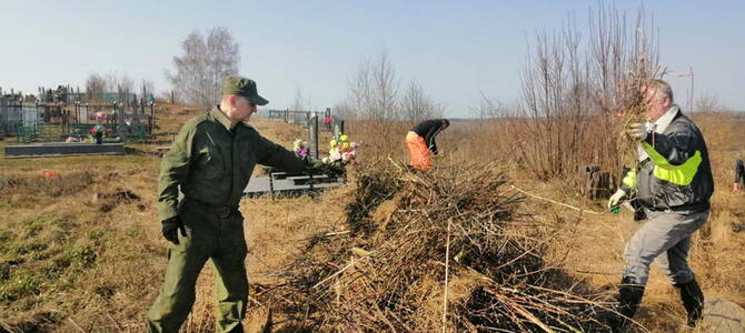 Священнослужитель совместно с прихожанами убрали на кладбище сорную растительность, расчистили заброшенные могилы.