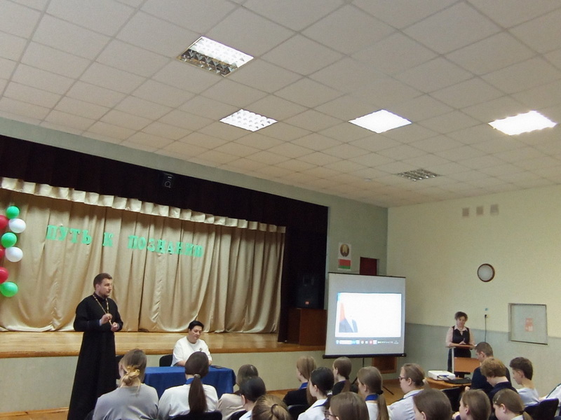 31 марта настоятель храма святых апостолов Петра и Павла г.п. Кореличи иерей Игорь Пирог посетил средние школы №№1 и 2, где принял участие в информационно-образовательном проекте "ШАГ" на тему: "Быть достойным гражданином Республики Беларусь - значит разделять и поддерживать духовные ценности белорусского общества".
