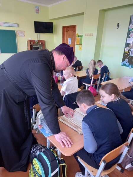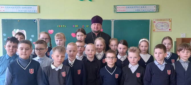 17 марта клирик Свято-Никольского кафедрального собора г. Новогрудка иерей Николай Лащевский побывал в средней школе №5 им. Григория Фомичева, где провел беседу с учащимися 4«А» класса.