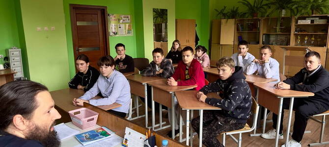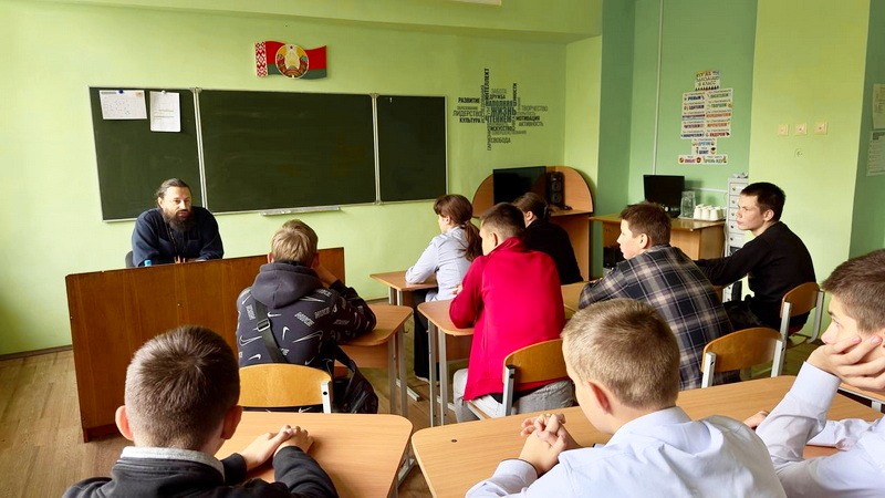 17 октября настоятель храма иконы Божией Матери «Нечаянная Радость» г. Новогрудка протоиерей Вадим Кузьмич провел с воспитанниками спецшколы-интерната беседу «Я и моя семья без сквернословия».