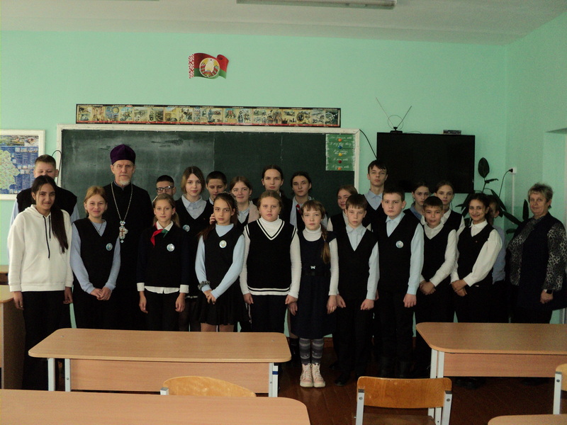 21 октября настоятель храма Святой Живоначальной Троицы аг. Деревная Слонимского благочиния протоиерей Анатолий Ежевский провел беседу с учащимися 4-9 классов Деревновской базовой школы на тему: «Я и моя семья – без сквернословия».