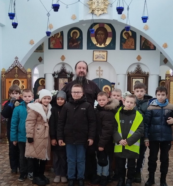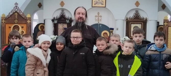 Священник рассказал школьникам о грядущем празднике Рождества Христова, а также ответил на вопросы о вере, храме и важности стараться жить по-христиански. После познавательной беседы дети получили от настоятеля сладкие подарки.