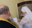 Болящие, с которыми накануне побеседовали сестры милосердия о важности Таинств Исповеди и Причастия, приступили ко Святым Таинствам.