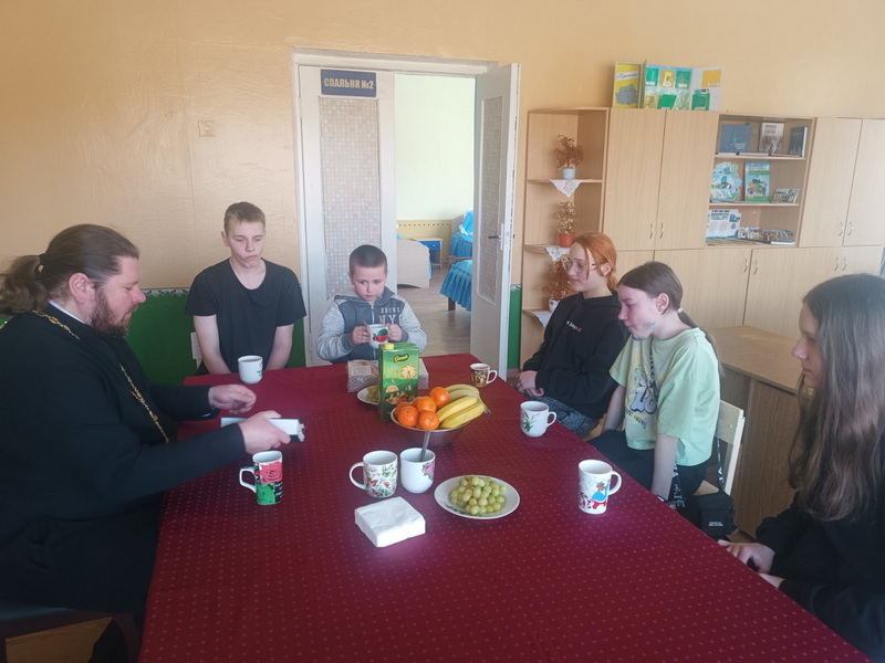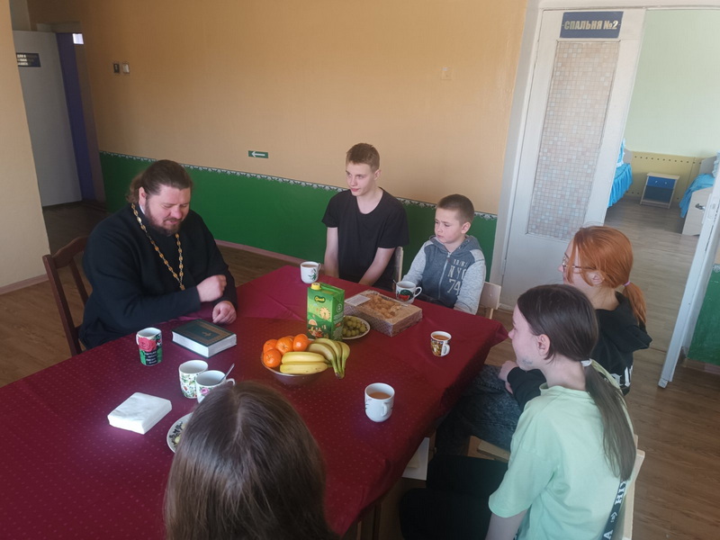 Священник провел с находящимися там ребятами беседу на тему: «Как не стать жертвой домашнего насилия» и ответил на заданные вопросы.