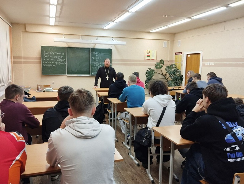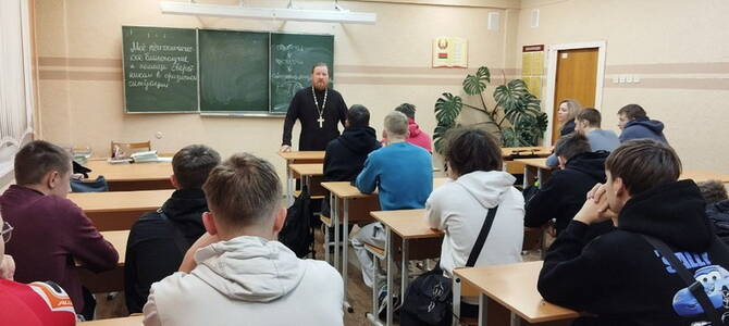 28 января настоятель храма святых благоверных князей Бориса и Глеба г. Новогрудка протоиерей Николай Косяк побеседовал с учащимися 3 курса Новогрудского государственного колледжа на тему: «Как правильно найти себе спутника жизни».
