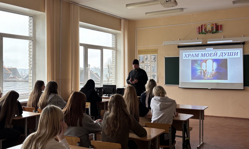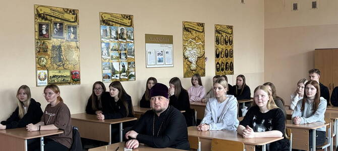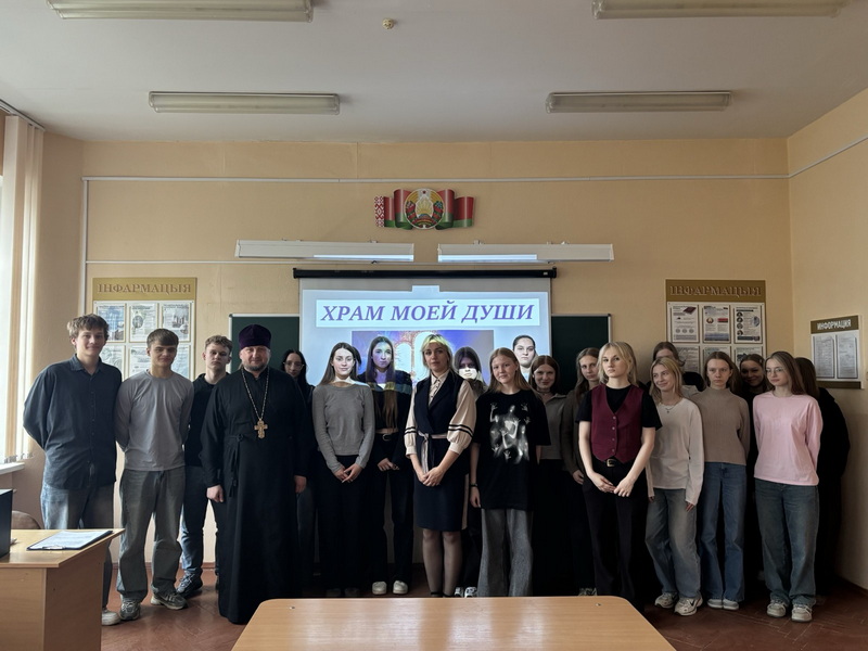 1 апреля в Новогрудском торгово-экономическом колледже прошел урок духовности на тему «Храм моей души», в котором принял участие клирик Свято-Никольского кафедрального собора иерей Николай Лащевский.