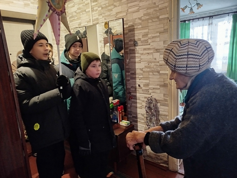 Священник и христославы поздравили односельчан и жителей отдаленных деревень прихода. Поздравления также получили сотрудники Щорсовского сельисполкома и школы, работники деревенских магазинов. Немощным прихожанкам школьники активно помогали в расчистке снега, носили дрова. Везде детей принимали тепло и потчевали сладкими угощениями.