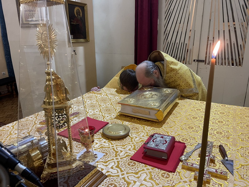 В этот день священнослужители приступили к Таинствам Исповеди и Причастия.