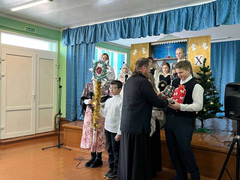 В своих выступлениях священник поздравил учащихся и педагогов с зимними праздниками — Рождеством Христовым и Крещением Господним, а также вручил детям подарки.
