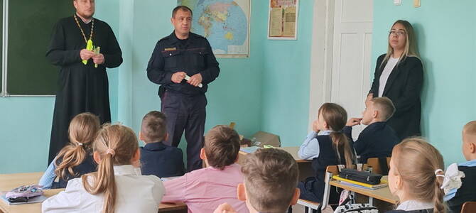 7 октября настоятель храма святых апостолов Петра и Павла г.п. Кореличи иерей Игорь Пирог и начальник МО ГАИ Новогрудского и Кореличского районов Д.В. Оскерко в рамках акции «Стань заметнее в темноте» побывали в средней школе №2, где встретились с руководством и учащимися.