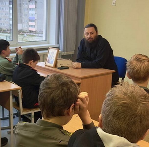 27 ноября в средней школе №7 г. Новогрудка состоялась встреча учащихся кадетского 7 «К» класса с настоятелем храма в честь иконы Божией Матери «Нечаянная Радость» протоиереем Вадимом Кузьмичом. Встречу организовала преподаватель Д.В. Невжинская.