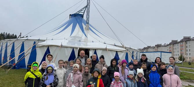 5 октября воспитанники Воскресной школы при Свято-Никольском кафедральном соборе г. Новогрудка и участники детского хора «Отрок» при новогрудском храме святой блаженной Ксении Петербургской во главе с протоиереем Анатолием Герасимуком посетили представление цирка «Шапито».