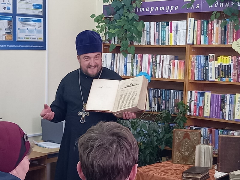Священник рассказал собравшимся о святых братьях Солунских, о первопечатниках на Руси, о просветительской деятельности белорусских святых. Для собравшихся была подготовлена выставка рукописных, старопечатных книг и древние документы по истории прихода.