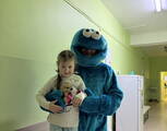 Во время традиционного посещения отделения гости вместе с аниматором принесли хорошее настроение и угощения юным пациентам.