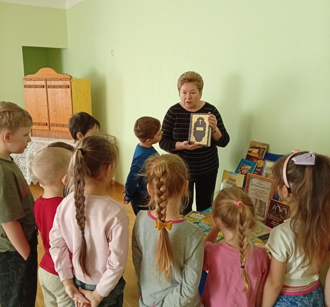 Светлана Викторовна рассказала детям о самой главной православной книге - Библии. На выставке православных книг, организованной в детском саду, дети имели возможность познакомиться с разными книгами: Библией для взрослых и детей, с молитвенниками, с книгами о житии святых, об иконах, а также с православной литературой для детей. Дошкольники с интересом послушали поучительные рассказы из книги «Детям о дружбе», а в подарок ко Дню православной книги получили книжки-раскраски.