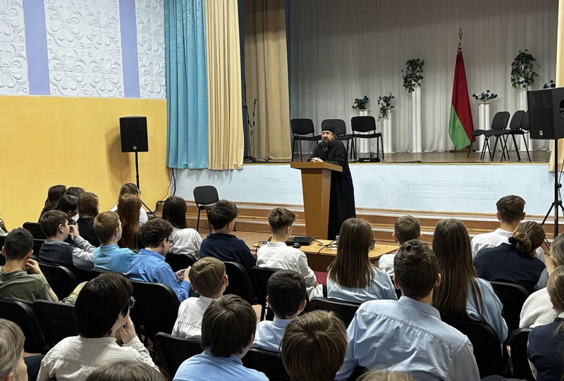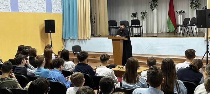 19 декабря настоятель храма в честь иконы Божией Матери «Споручница грешных» г. Слонима протоиерей Владимир Комаров провел беседу с учащимися 7 классов средней школы №8 на тему: «Мои права и обязанности. Есть ли границы у свободы?».